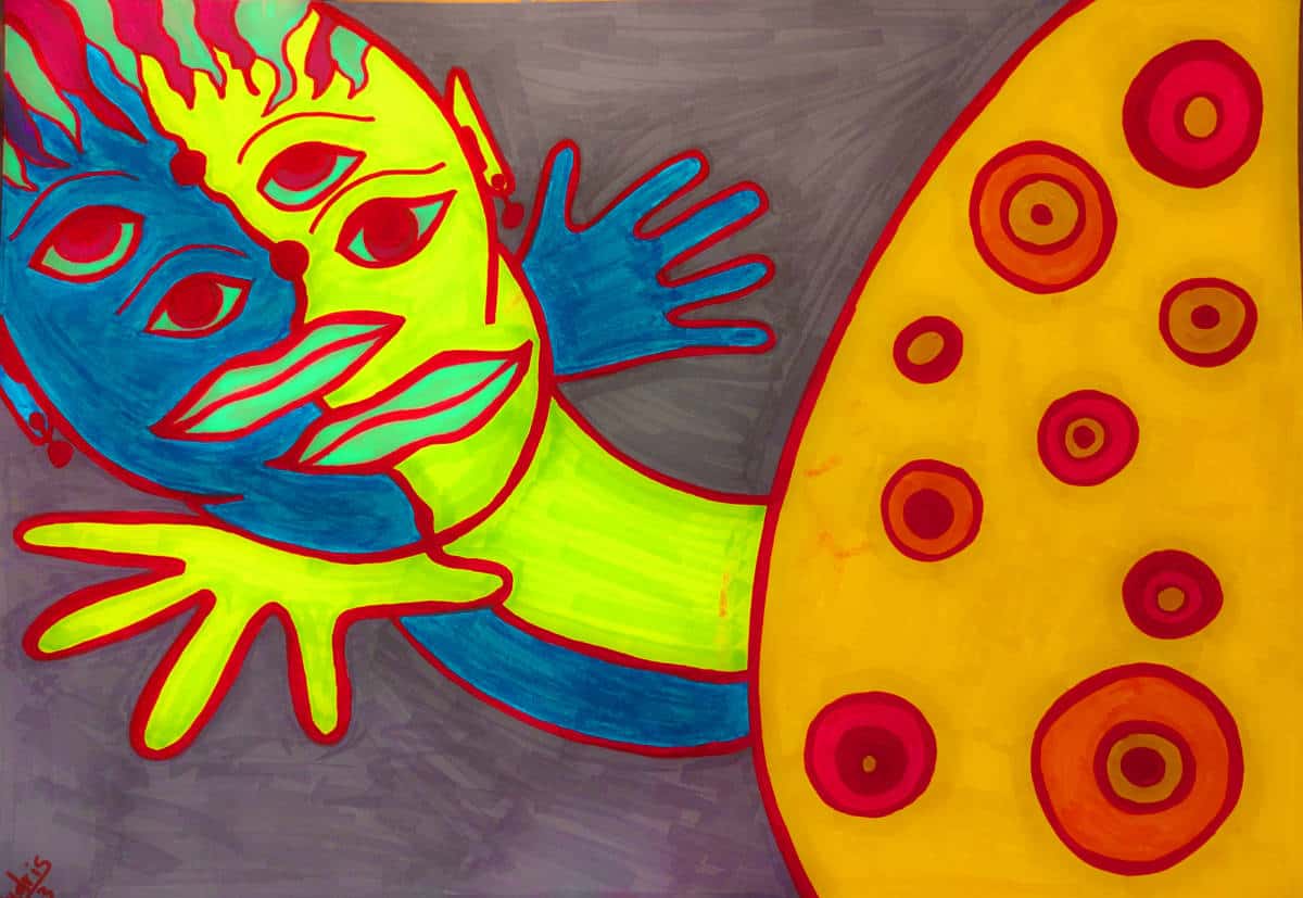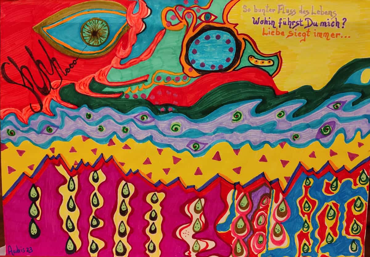 Tauche ein in ein Kaleidoskop aus leuchtender Energie, wo Chaos und Schönheit ineinanderfließen. Diese Bilder laden dich ein, den wilden Tanz der Farben zu spüren und den verborgenen Welten zu folgen, die sich darin öffnen.